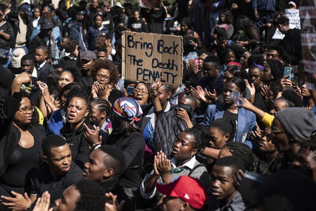 Bona abasemfuthweni bathi ukungaxhonywa kombulali kukungaqo siseko (constitution) eyasayinwa yavunywa nguMongameli wokuqala weli lizwe ubawo uNelson Mandela. Bathi kodwa ngoku ukuguqulwa kwalo mgaqo siseko kungathathe ixesha elide. Uninzi lwabo bantu bafuna sibuyiswe isigwebo sentambo kuvakala okoku baphaya kumnyinge we 80% logama abachaseneyo noku bephaya ku 20%. Abazaziyo iindaba bezithanda futhi bathi lo myinge ka 20% ngabo bathi bona bangama krestu yaye ukuxhoma umntu asinto ilungileyo. Kuvakala okokuba bona bathi isigwebo sentambo silwa namalungelo abantu.